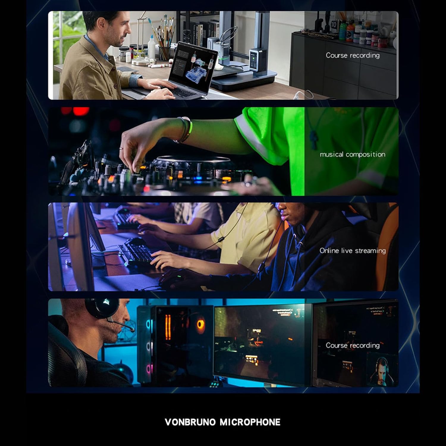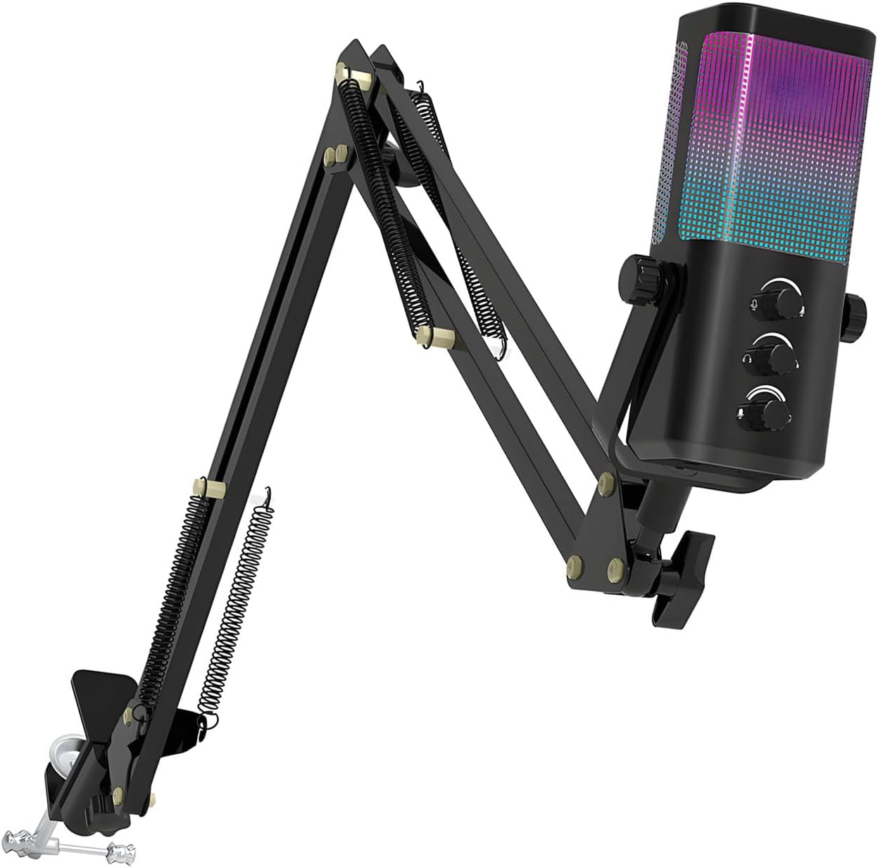 • Adjustable Color Lighting Effects: This gaming microphone features dazzling color lighting effects with multiple modes, including dynamic colour change, breathing light patterns, or colour option